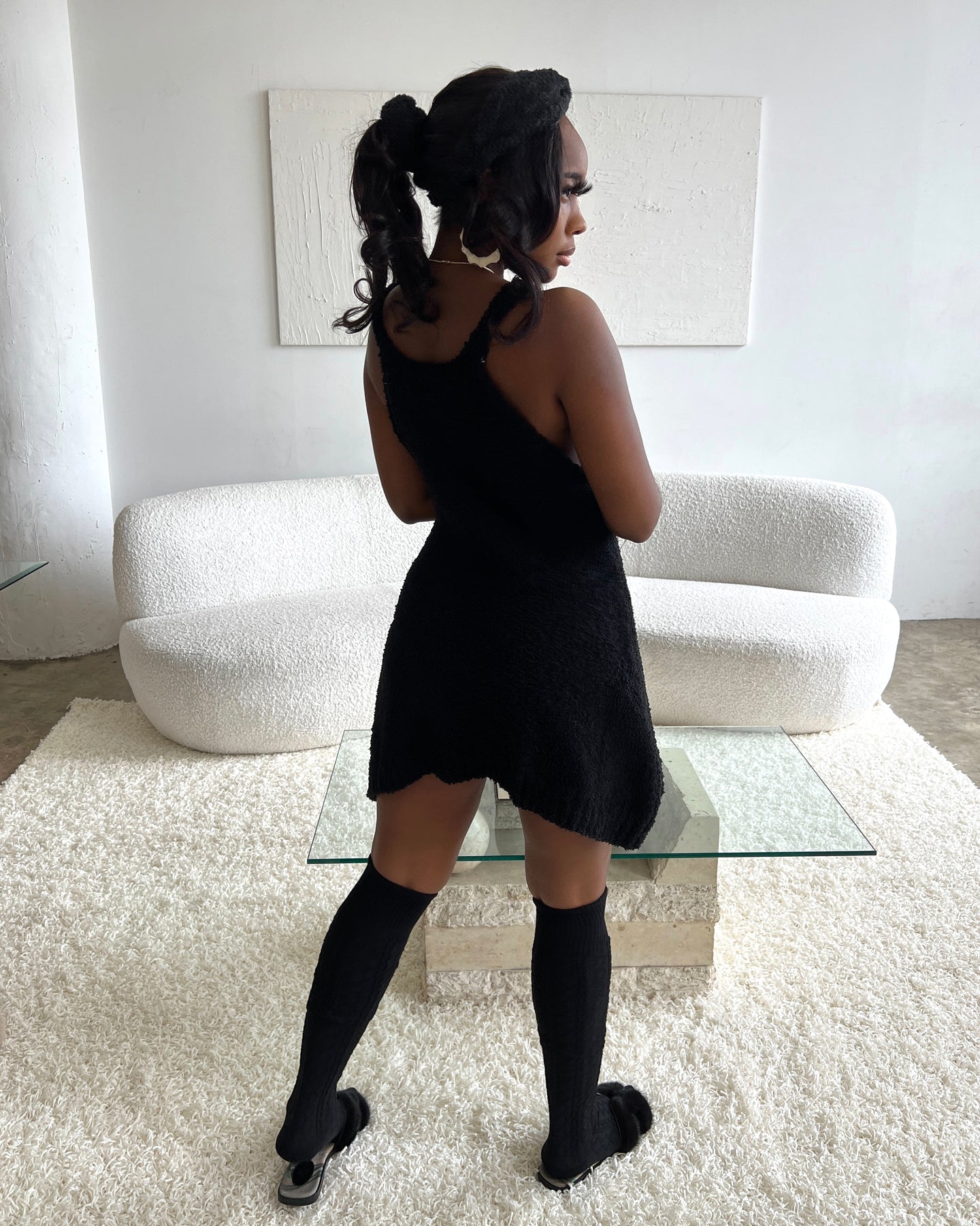 Berber Fleece Racer Style Sweater Mini Dress