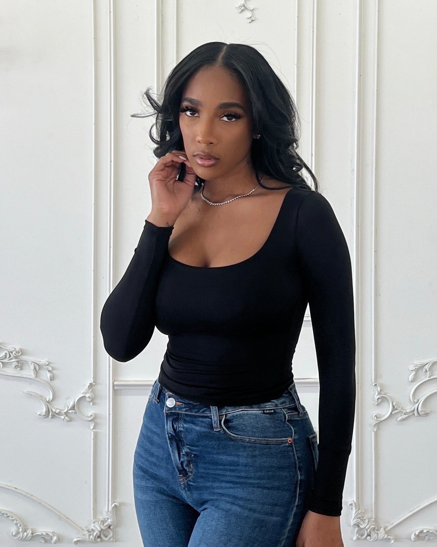 The square neck top is double lined on the body for extra support and stretchy to comfortable move around
