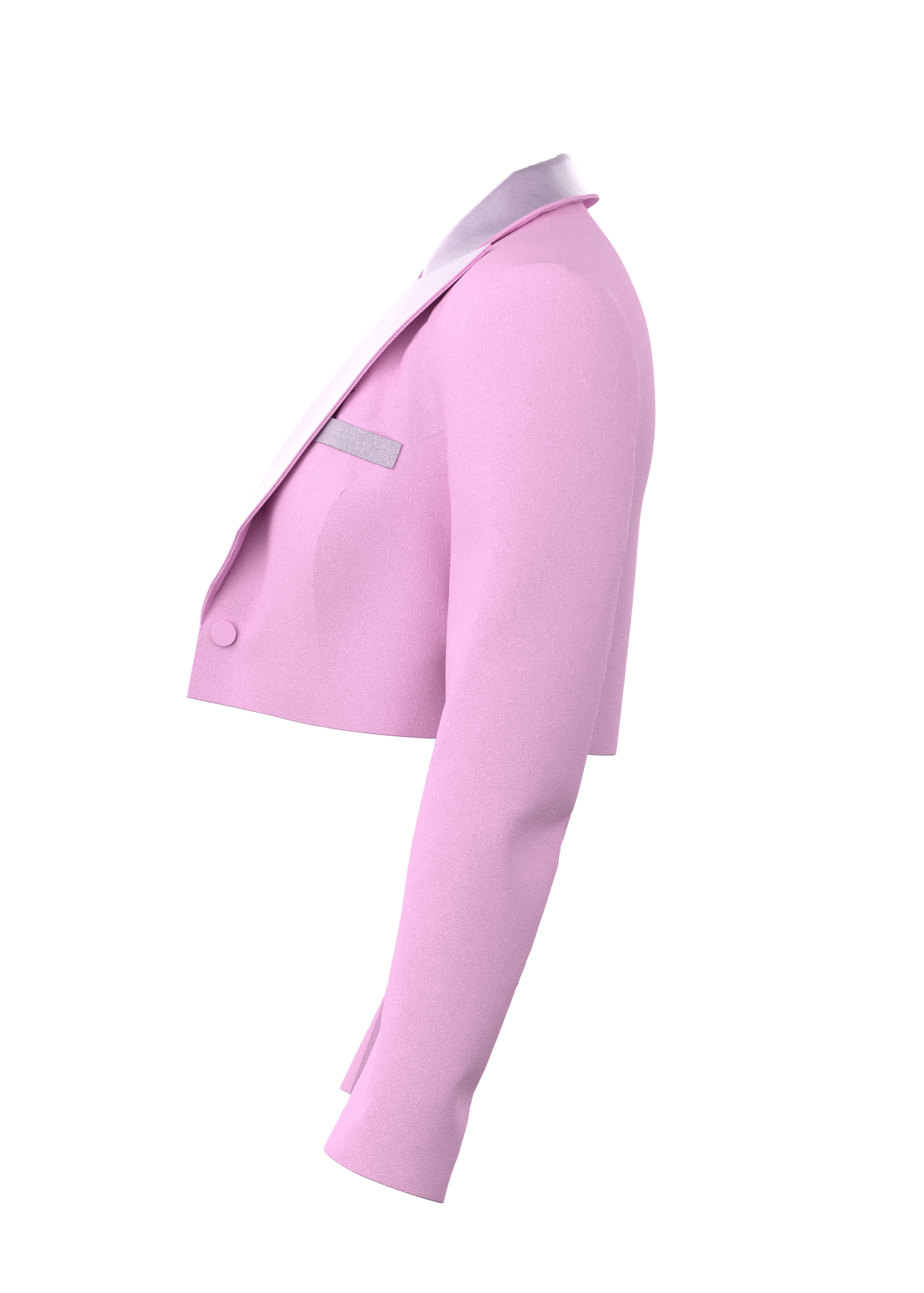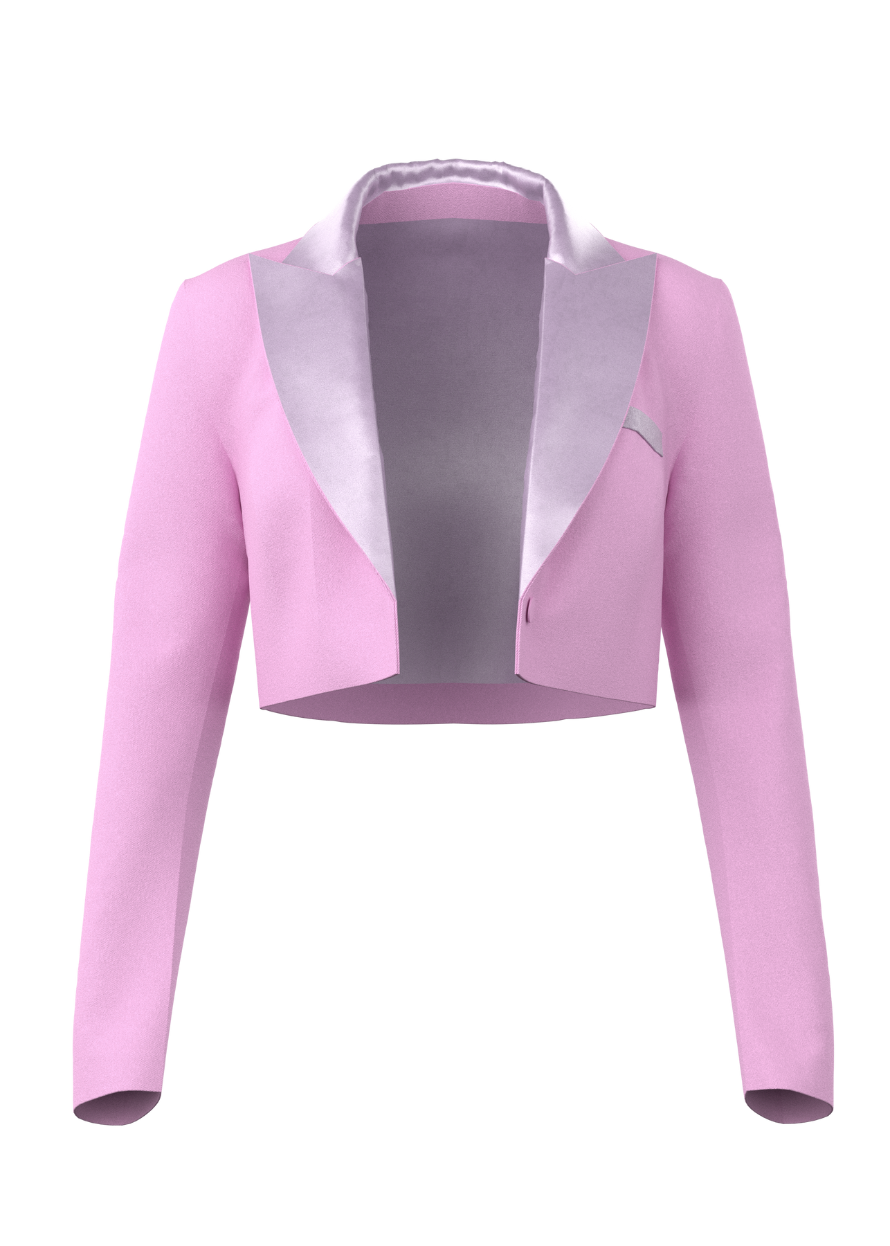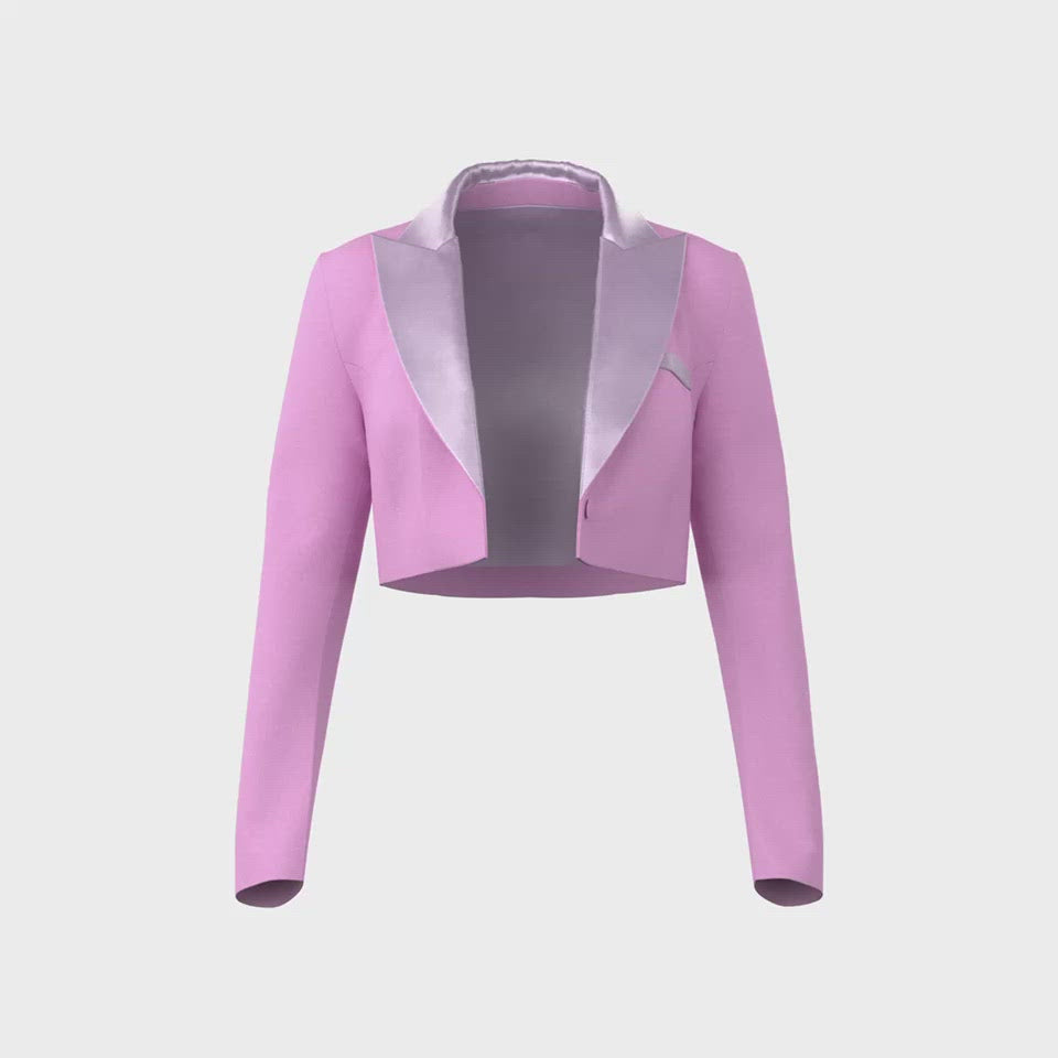 Cropped blazer that features elegant contrast satin peak lapels and single button closure.