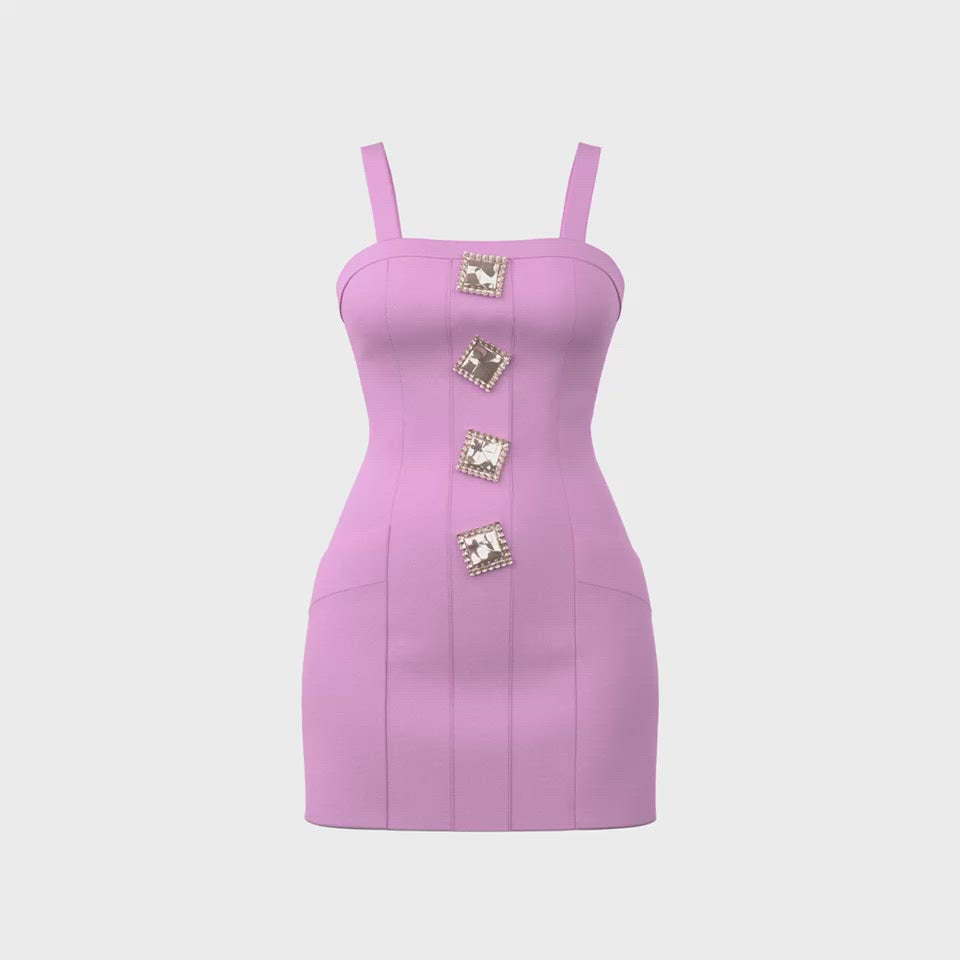 Straight neckline, exaggerated rhinestone buttons details and twin pockets.