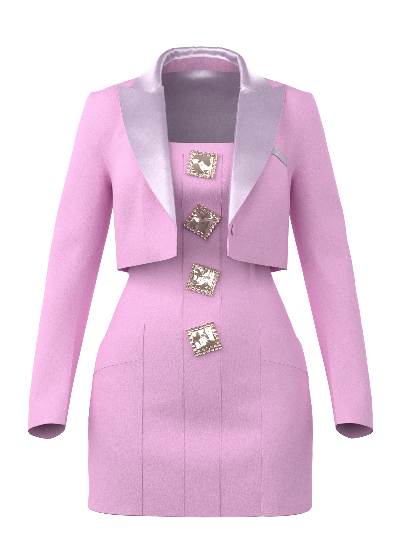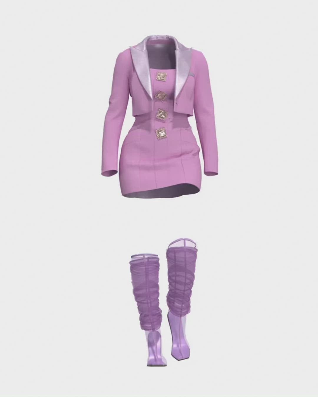 Lavender Two-Piece Set features a Sheath Dress that falls above the knee
