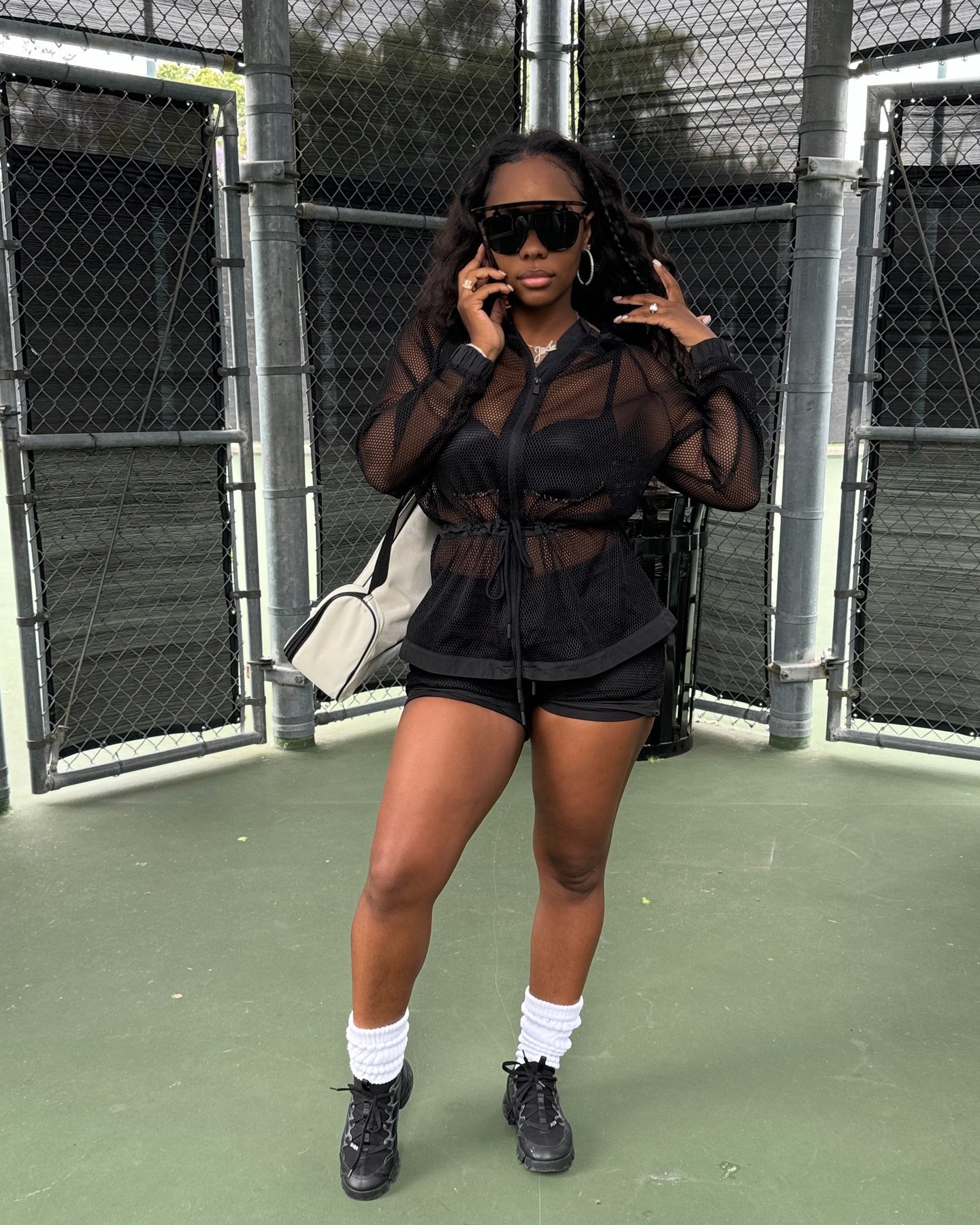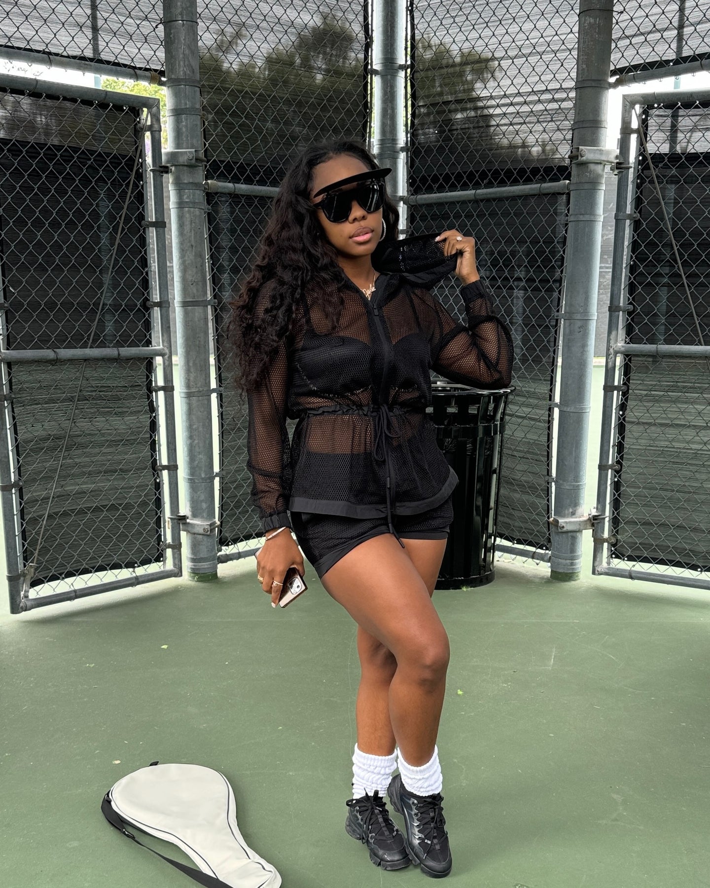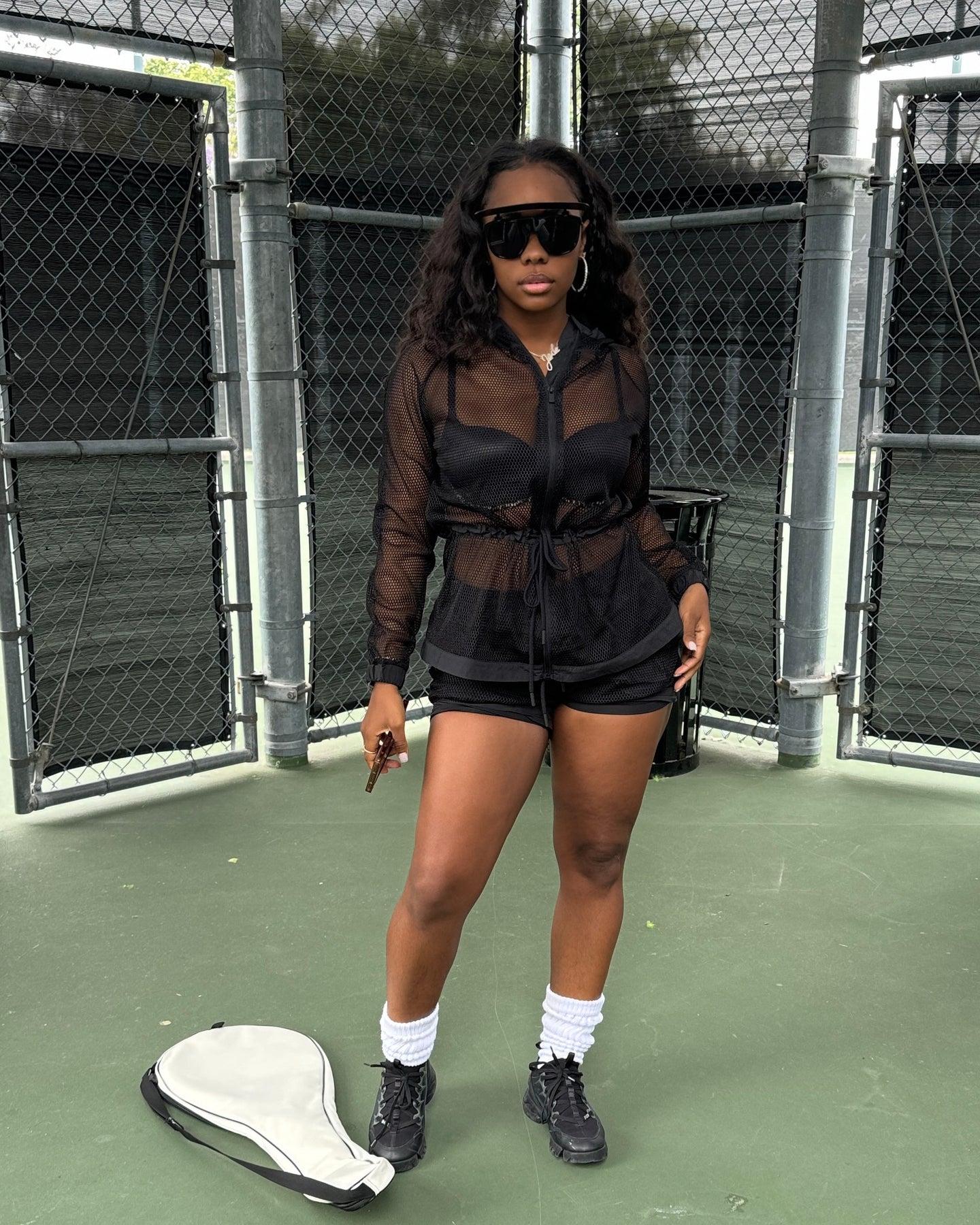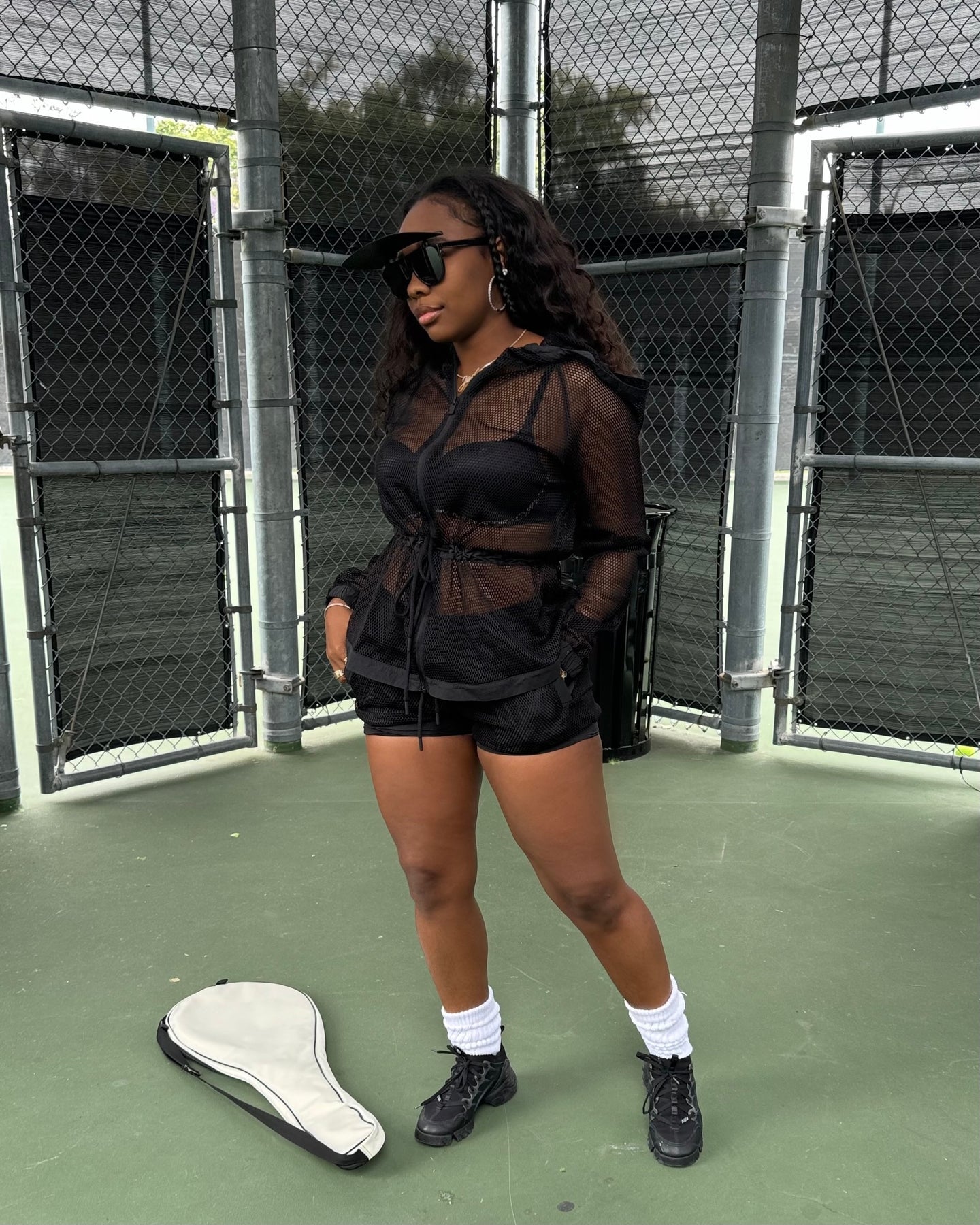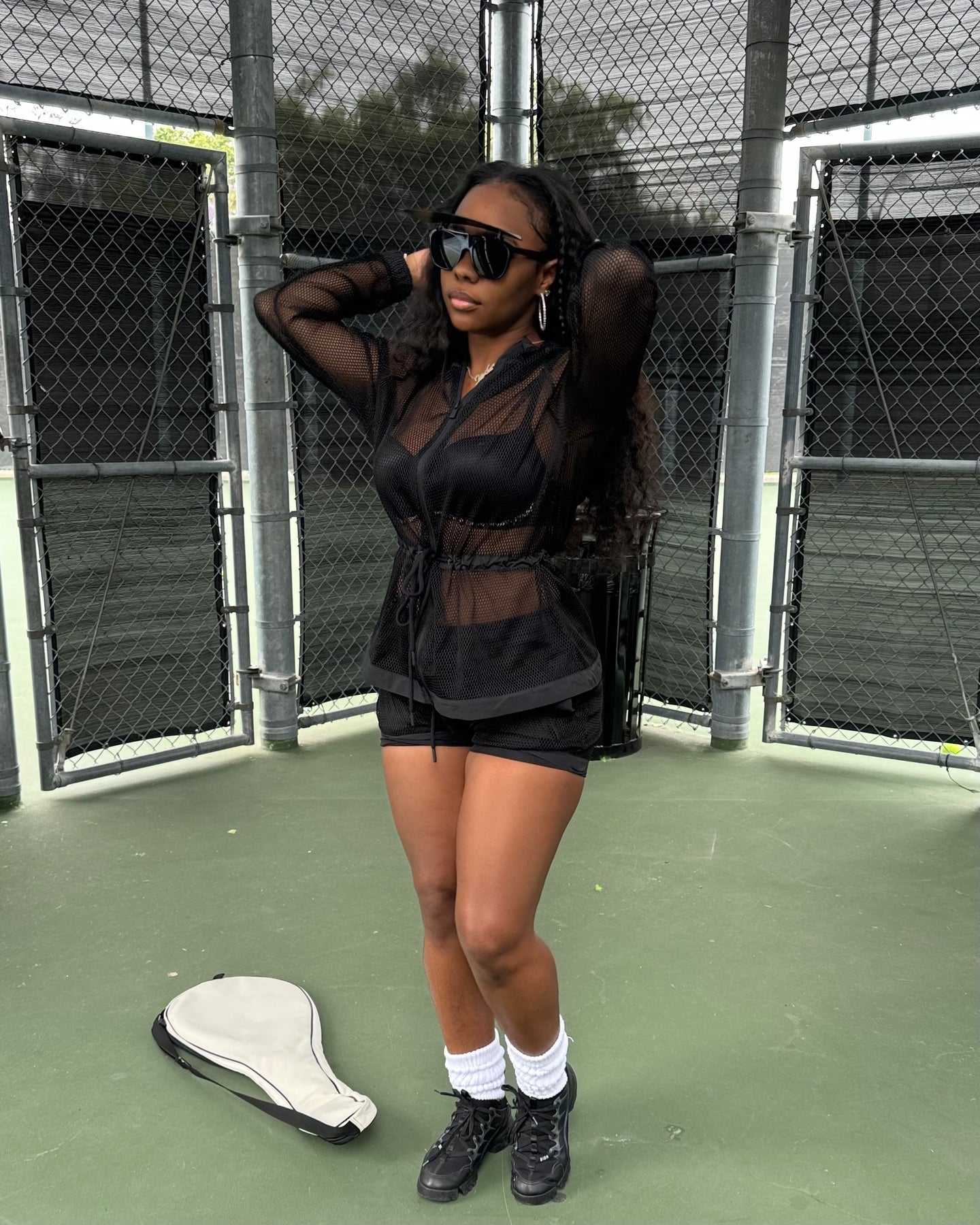 Fishnet Jacket W/ Hoodie & Tie Waist