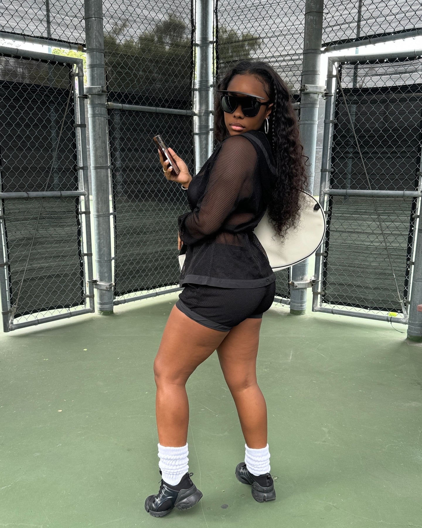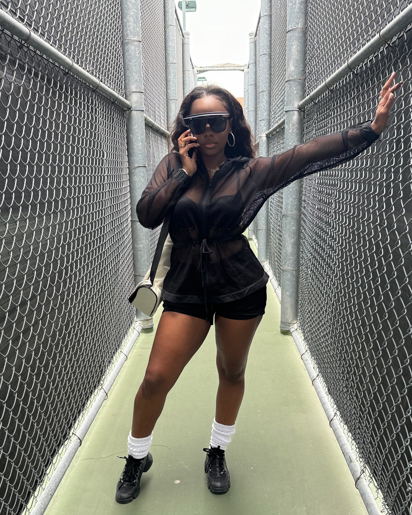 Black Mini Shorts w/ Fishnet Covering & Elastic Waist