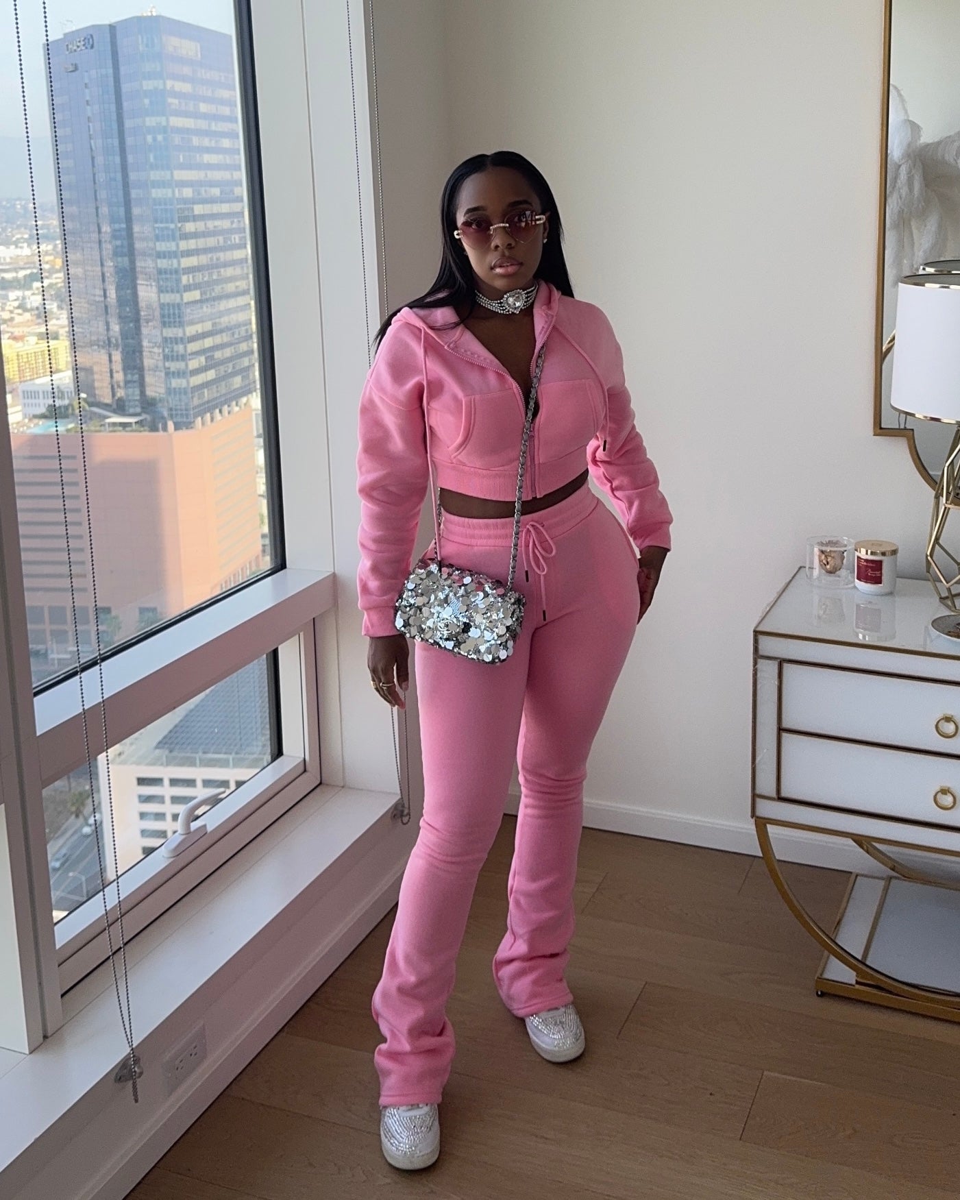 Extended Pants Length Measured at 36 inch inseam paired with Long Sleeve Cropped Front Zipper Hoodie