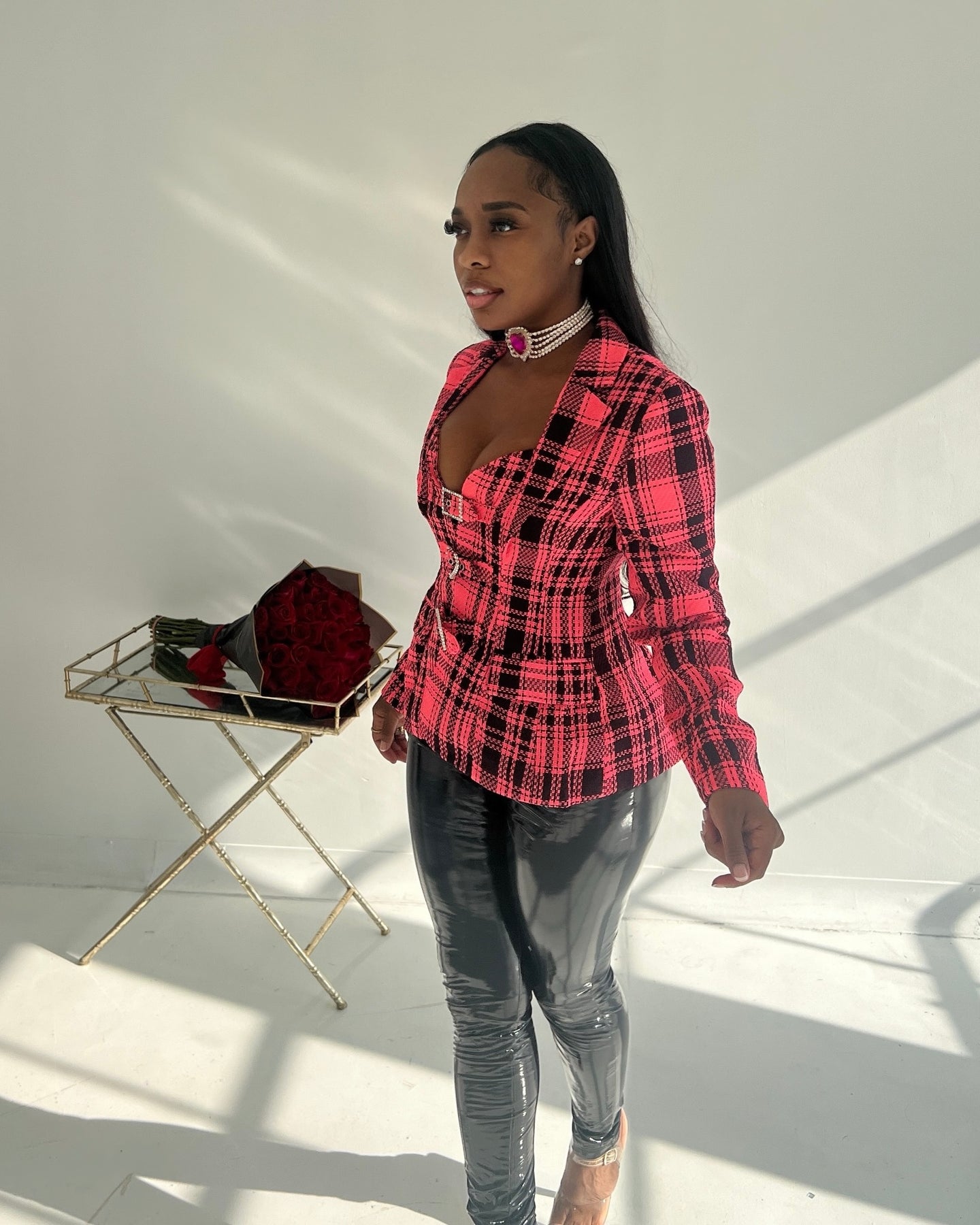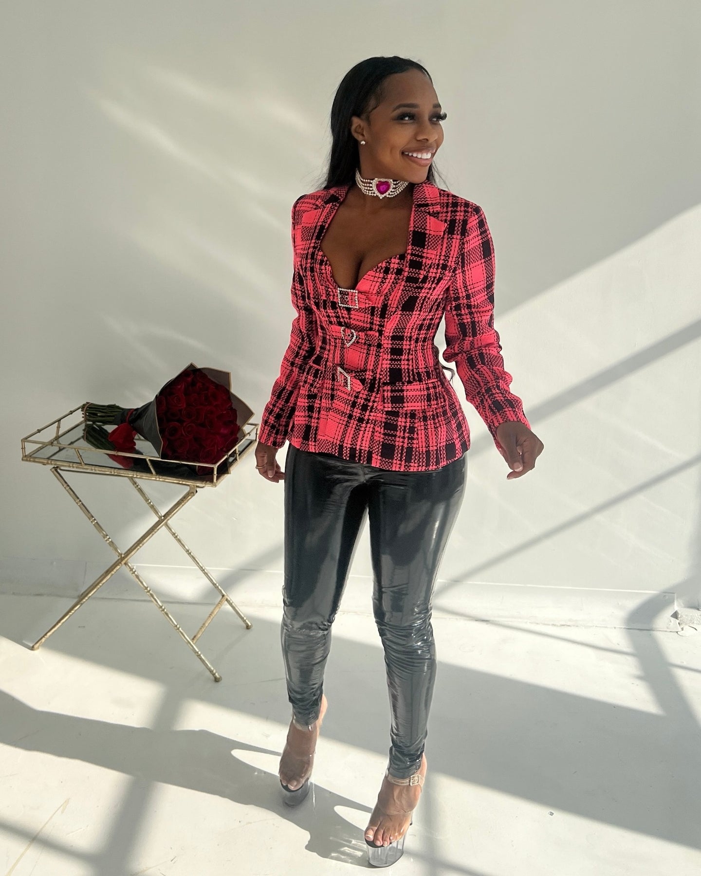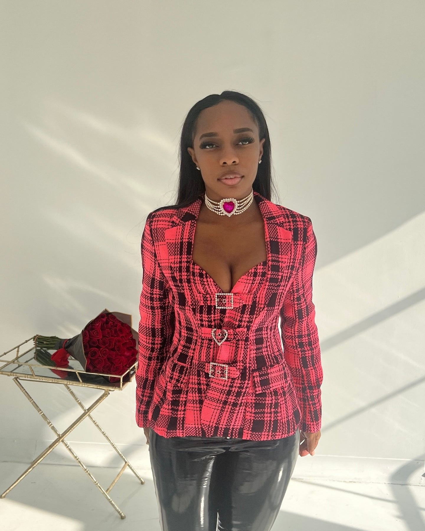 • PLAID BUCKLE EMBELLISHED JACKET
