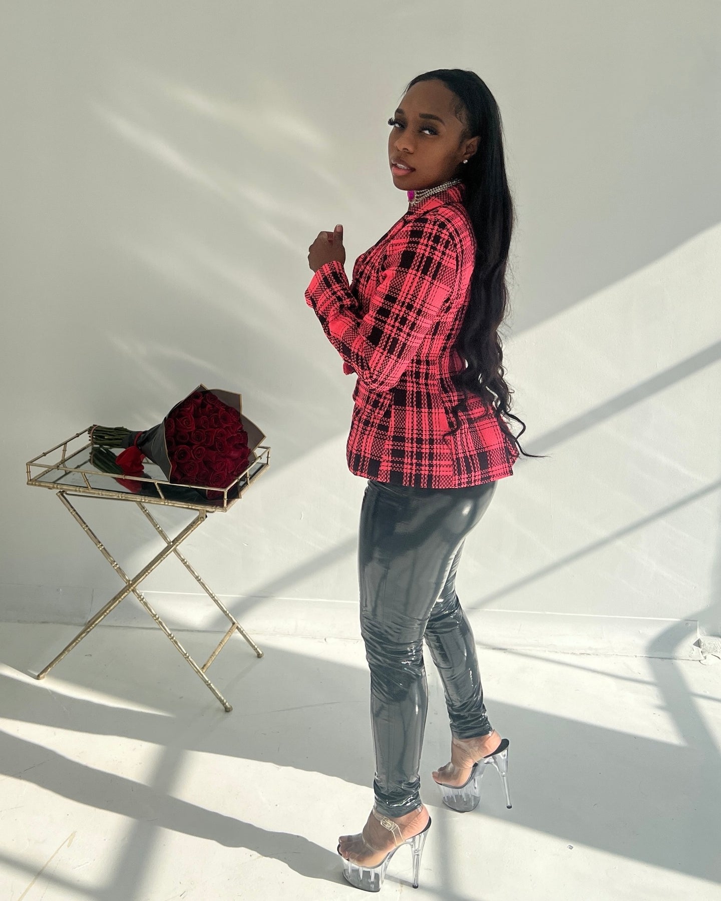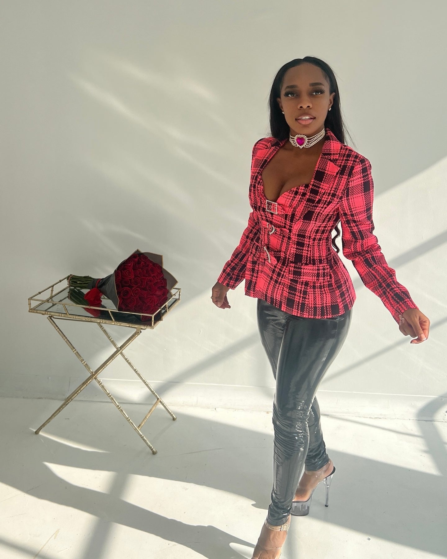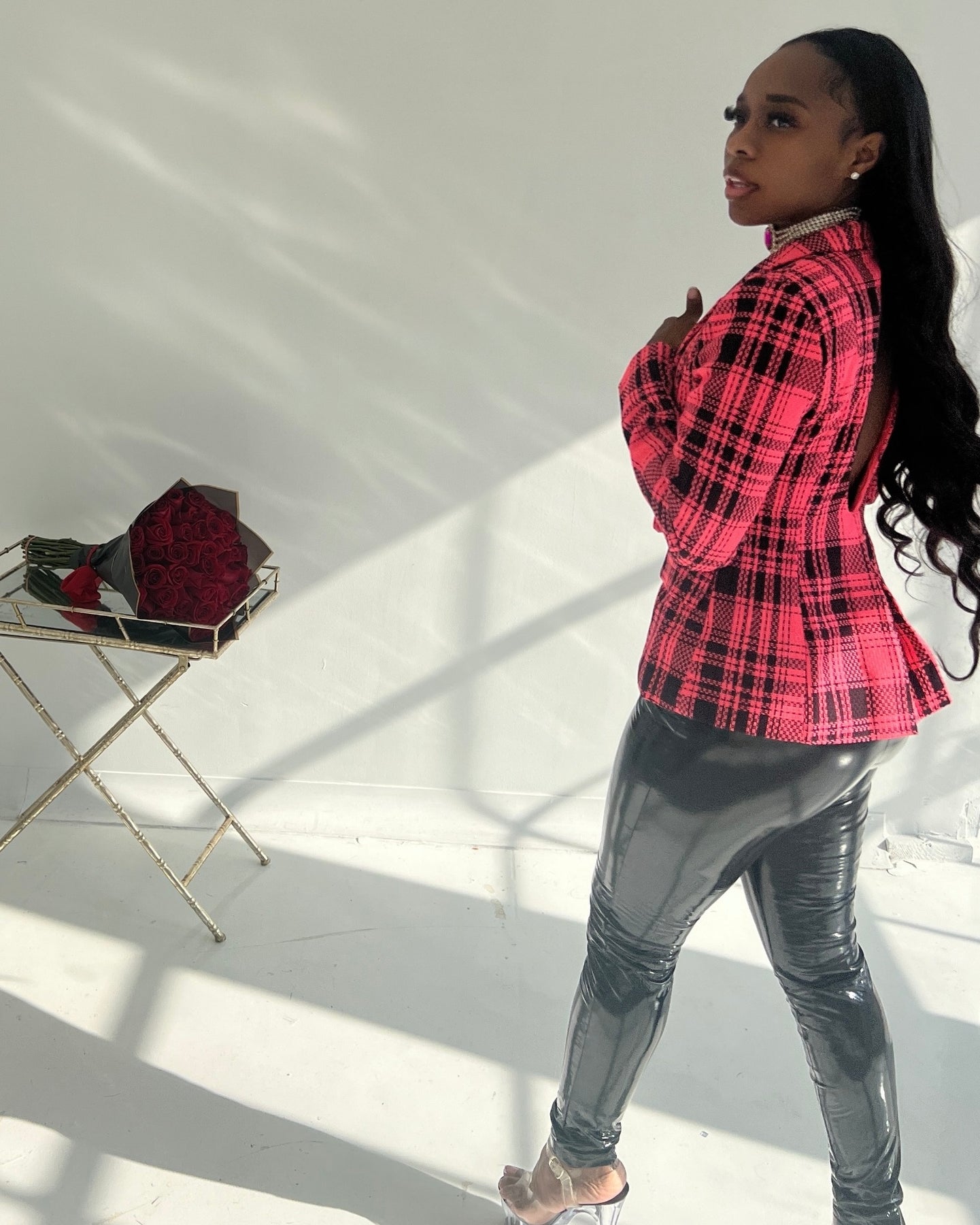 • PLAID BUCKLE EMBELLISHED JACKET