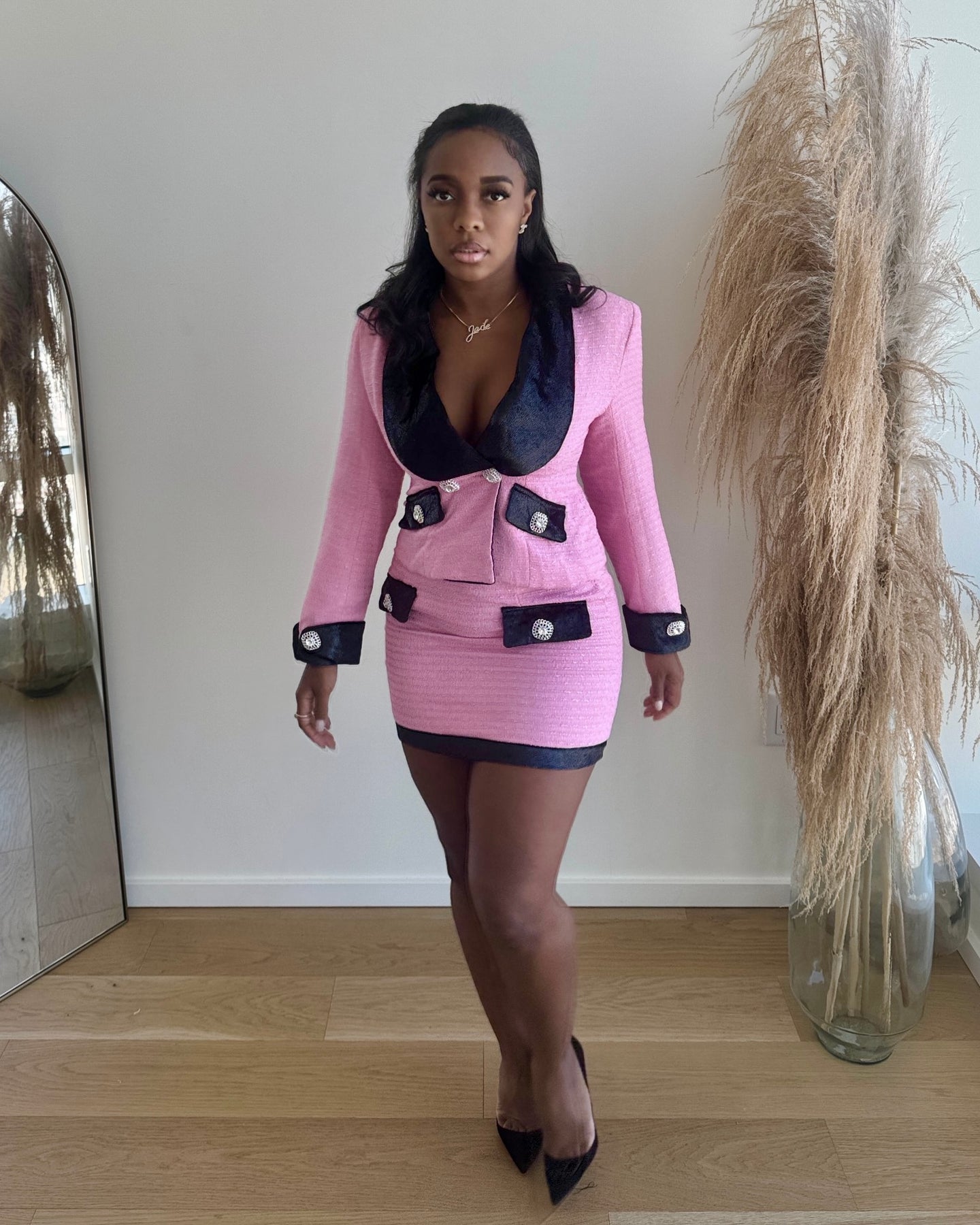 Mini Skirt Paired w/ Waist Length Blazer Jacket