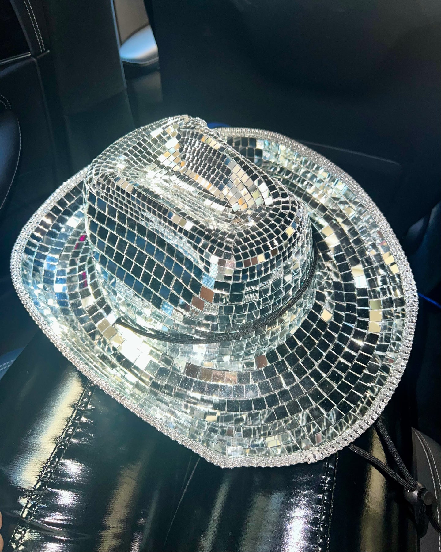 Be the star of your own show in this stunning Silver Disco Ball Cowboy Cowgirl hat! Step into the spotlight and strut your stuff like Queen Bey on her Renaissance Tour. Eye-catching and bold, this hat will truly make you stand out! Be bold, take risks, and make a statement!