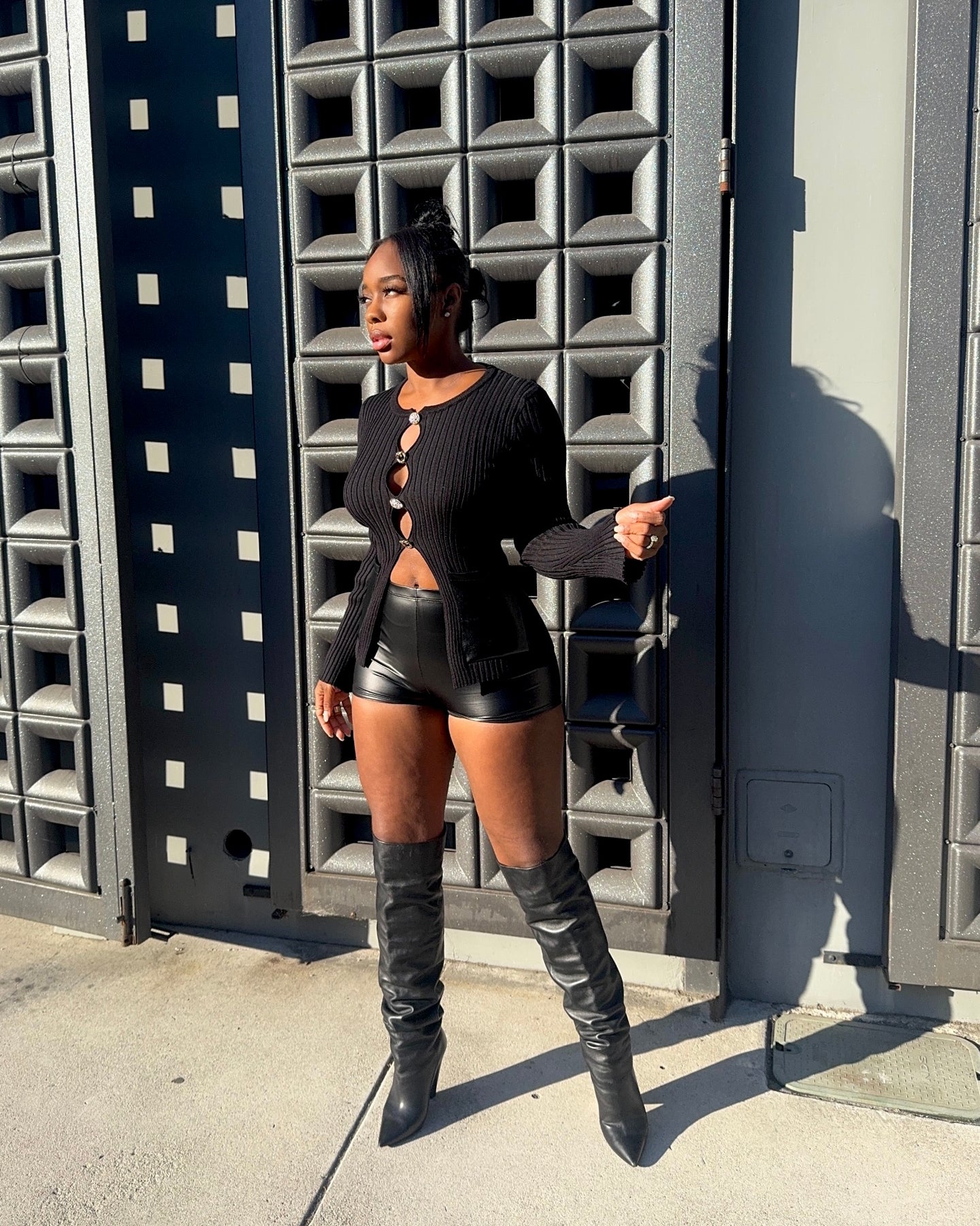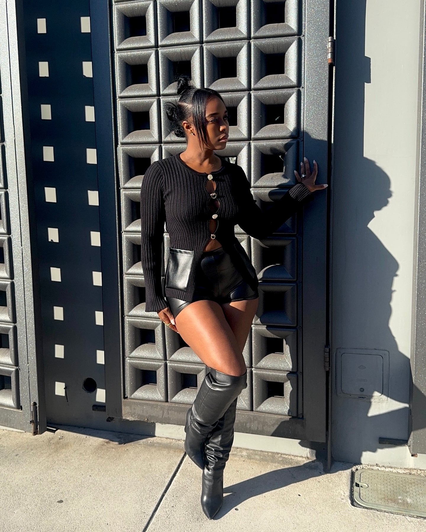 - Mid-cut opening down the center for a bold, sculpted look